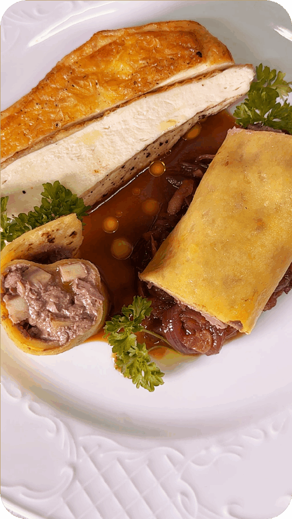 Náš recept samozrejme nepripravil sv. Martin, ale šéfkuchár Martin Korbelič. Je inšpirovaný klasickými hodmi, no prispôsobený bežným domácim podmienkam. Základom je kuracie mäso, konkrétne prsia s kožou, doplnené o netradične pripravenú červenú cibuľu a plnenú lokšu.