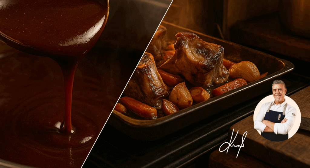 | TIP MARTINA KORBELIČA “Demi glace je základná hnedá omáčka z kuracích vnútorností, ktorá je výborná na prípravu ďalších rôznych omáčok, napríklad s hľuzovkami, s červeným vínom či so zeleným korením.” |